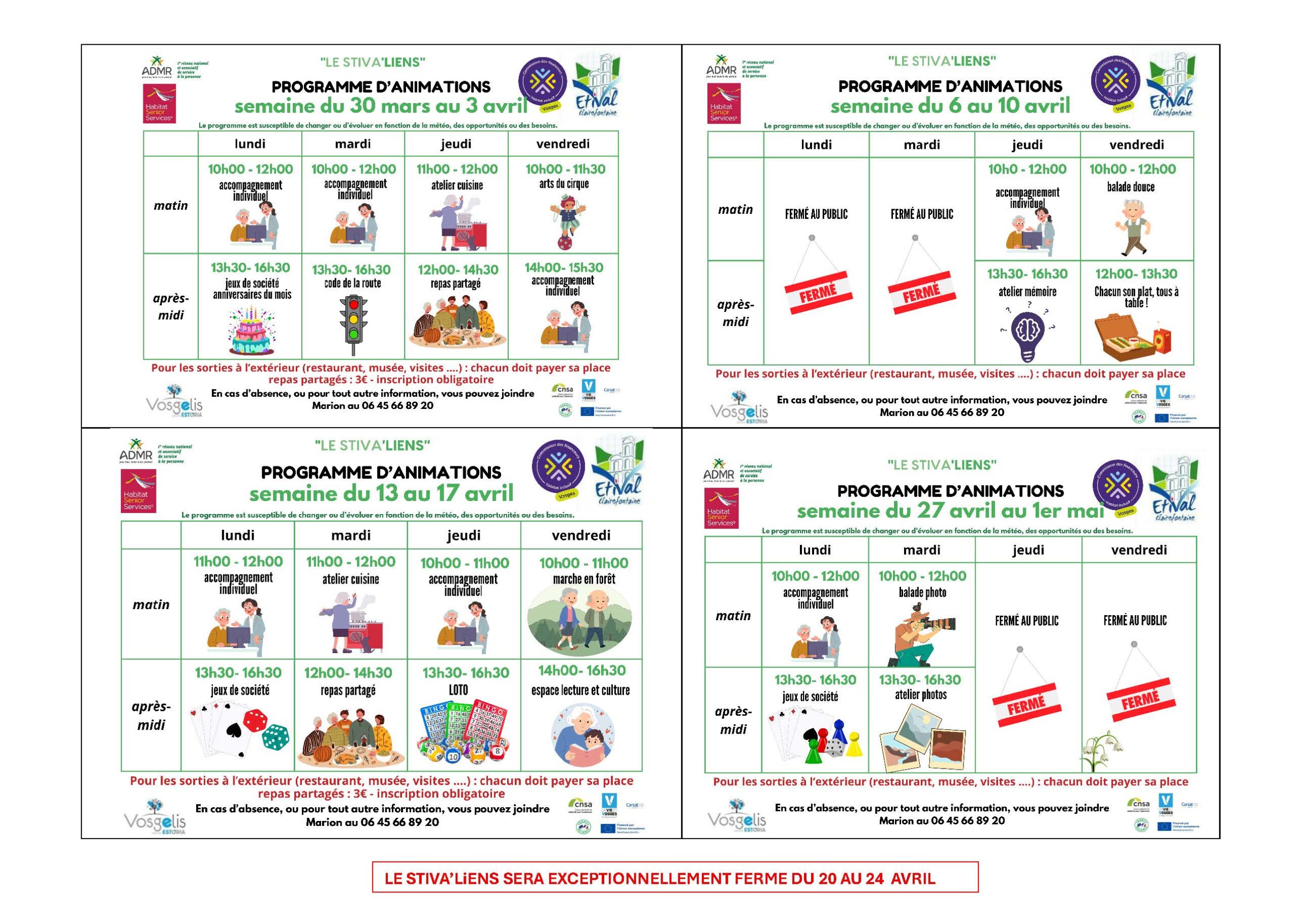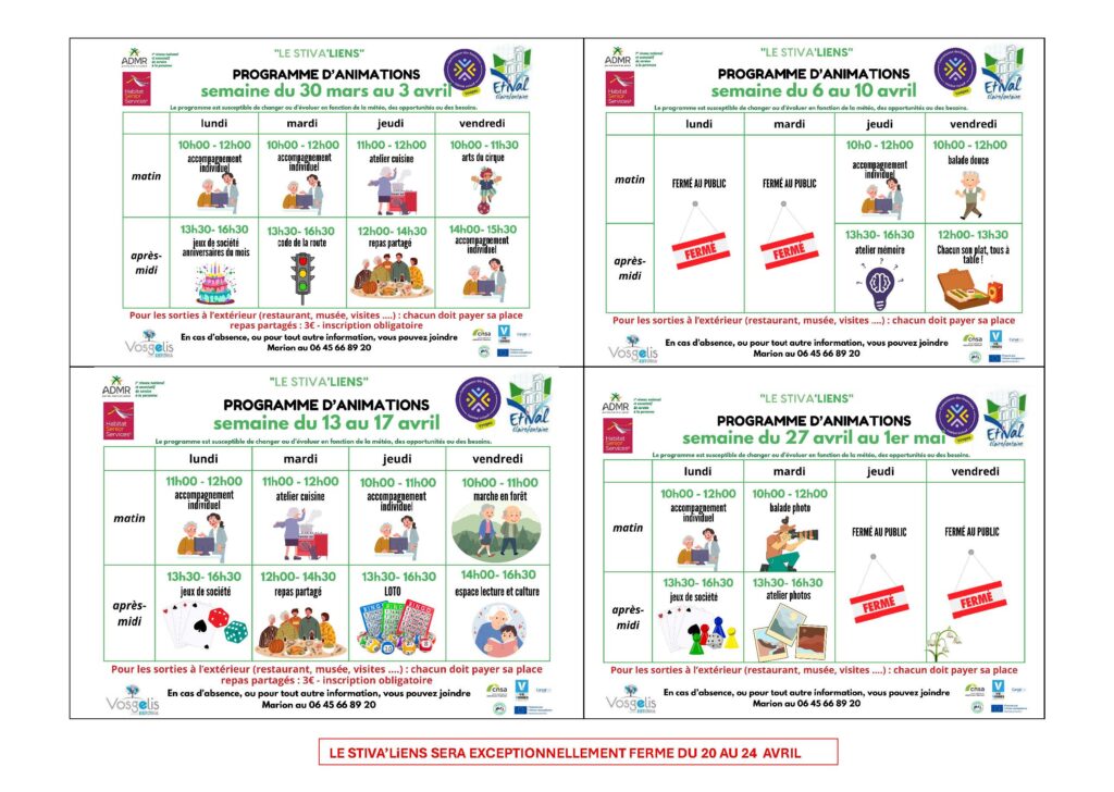 Toute personne de plus de 65 ans, peut venir découvrir les animations quand elle le souhaite et sans inscription (sauf repas) aux horaires indiqués sur le planning.